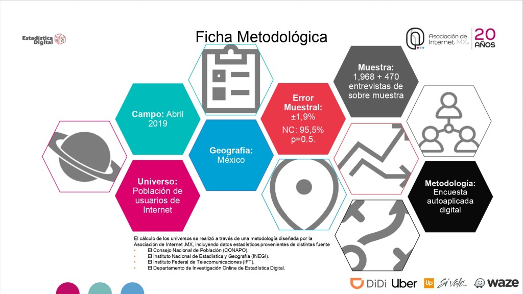 entre estos se encuentra el 15°estudios sobre los hábitos de los usuarios de Internet en México 2019 en el cual se halla información relacionada al perfil, hábitos, aspectos, psicograficos, y comportamentales de este. entre la información mas relevante y que sirve para diseñar estrategias de mercadotecnia y monitorear factores socio demográficos del mercado están los siguientes: